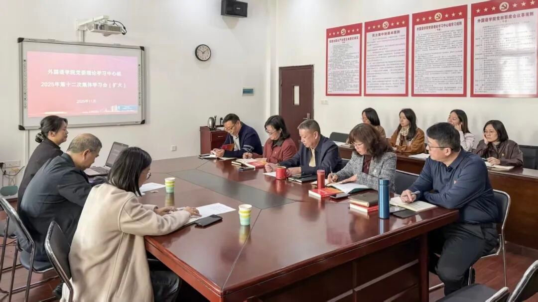 会议强调,学习好、宣传好、贯彻好党的二十届四中全会精神,是当前和今后一个时期的首要政治任务。要提高政治站位,深刻领会全会精神的根本要求,外语教育是讲好中国故事、传播中国声音、服务国家战略的重要阵地,必须将全会精神融入立德树人全过程,增强“四个意识”、坚定“四个自信”、做到“两个维护”。要聚焦主责主业,以高质量党建引领学院高质量发展,必须把党的绝对领导贯穿到教育教学、科学研究工作的全过程、各方面,将中华优秀传统文化、革命文化、社会主义先进文化有机融入外语教学,鼓励师生用外语阐释中国式现代化理论与实践,力争在学科建设、人才培养、社会服务等方面取得新的突破。要压实工作责任,全力冲刺确保全会精神落地见效,中心组成员要发挥“头雁效应”,带头宣讲、带头研讨、带头落实。各党支部要通过“三会一课”、主题党日等形式开展全覆盖学习。全院上下要切实把学习成果转化为推动工作的强大动力和实际行动,展现新担当、实现新作为。