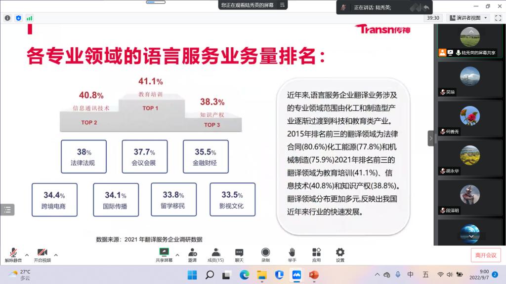 2022年9月7日上午,传神语联网网络科技股份有限公司副总裁闫栗丽应邀为91论坛