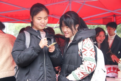 礼仪队主办的女生节活动摊位前人来人往,热闹非凡。现场工作人员介绍说,你可以匿名留下一份礼物或者一段祝福,我们会为你转达。“这次活动很有意义,不仅加深了我对美妆、健康、安全等方面的了解,还让我明白怎样‘内外兼修’提高自己,真的收获满满。”18电气九班的秦潇开心地说道。