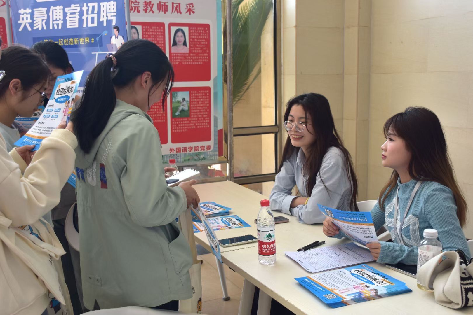 为积极响应国家稳就业号召,深入贯彻党中央、国务院和省委、省政府的决策部署,保障企业用工引才需求,促进我院毕业生高质量充分就业。3月30日,外国语学院于教15栋一楼大厅举办外国语学院举办2024届毕业生专场招聘会。外国语学院党委副书记光辉、毕业班辅导员徐蒙蒙和部分2024届毕业生参加此次招聘会。
