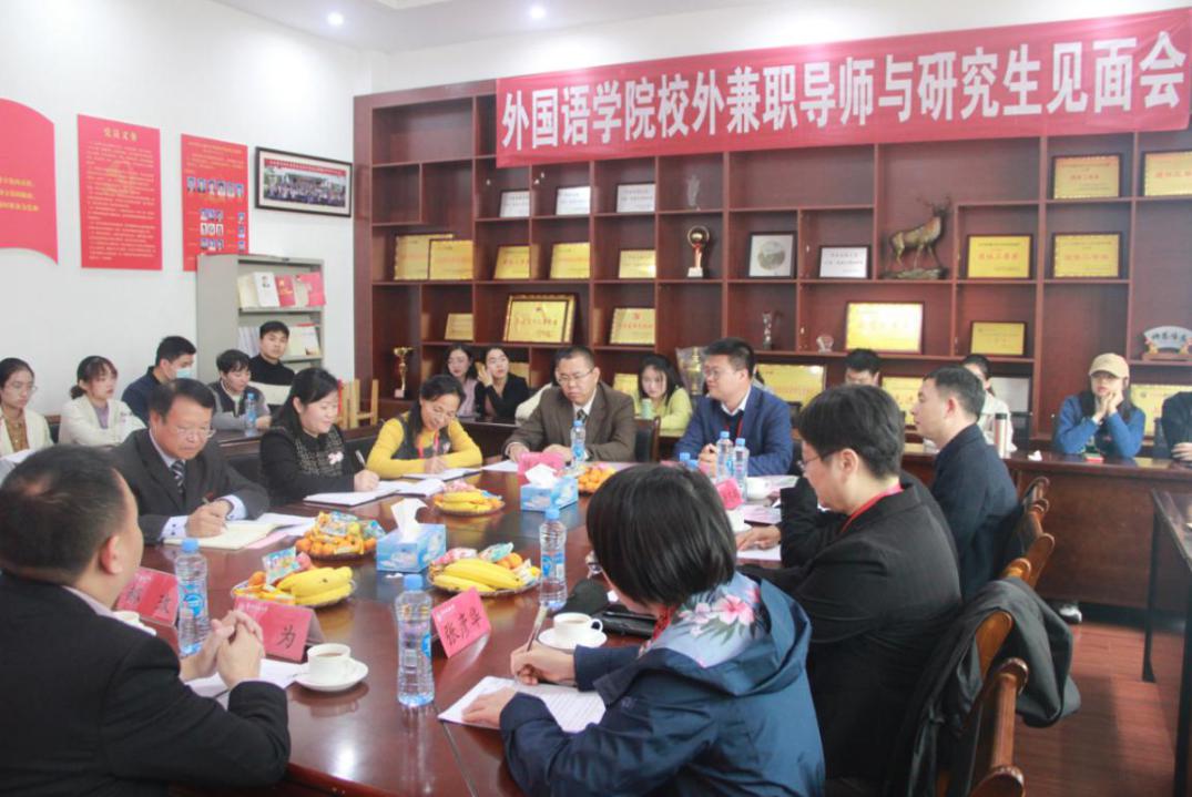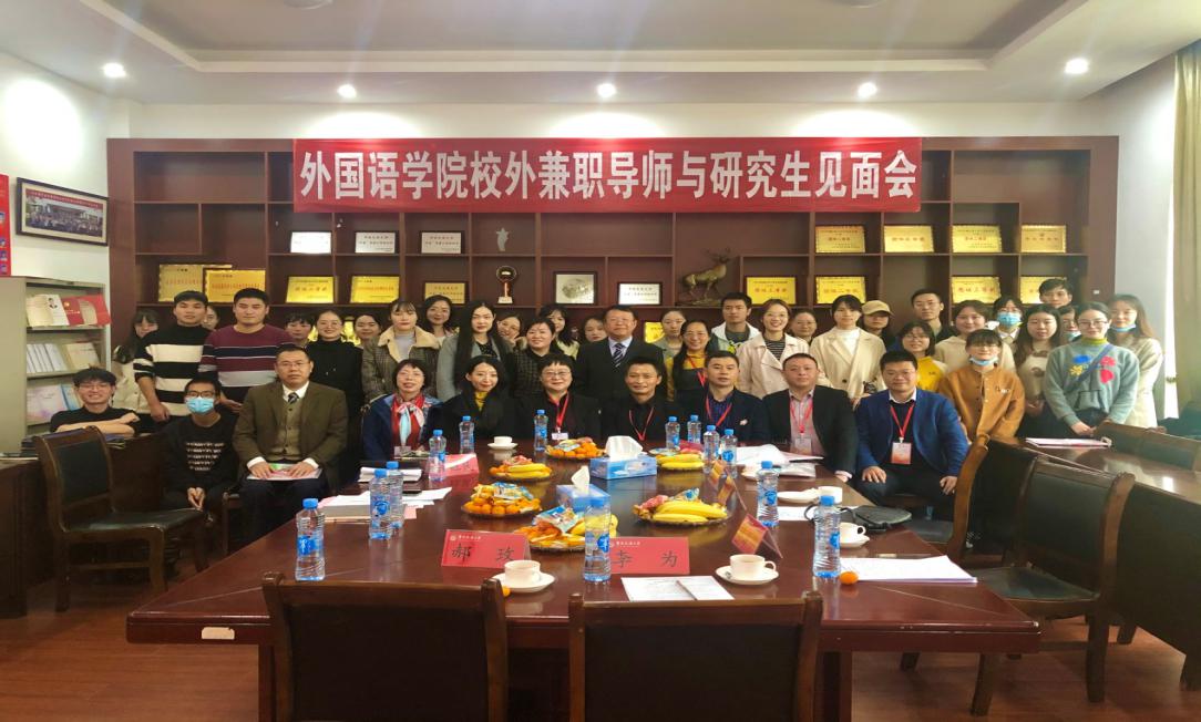 20周年院庆活动,与外院研究生在学院308会议室相聚一堂,为外语学院发展及研究生培养建言献策。会议由外语学院副院长袁平华教授主持,MTI中心主任陆秀英教授、副主任樊梦博士、研究生秘书钱淑群老师及2019级、2020级研究生参加。