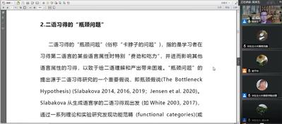师生带来了一场题为“中国学习者英语学习的瓶颈问题:来自于两个英语语法构式习得的证据”的学术报告。本次报告会采用网络视频的方式进行,报告由91论坛