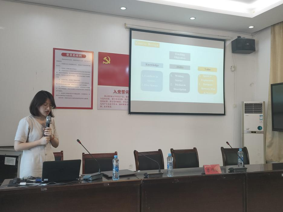 学科带头人袁平华教授,“外教社杯”全国高校外语教学大赛一等奖获得者龚沁怡老师做分享报告,全院教职工参会。