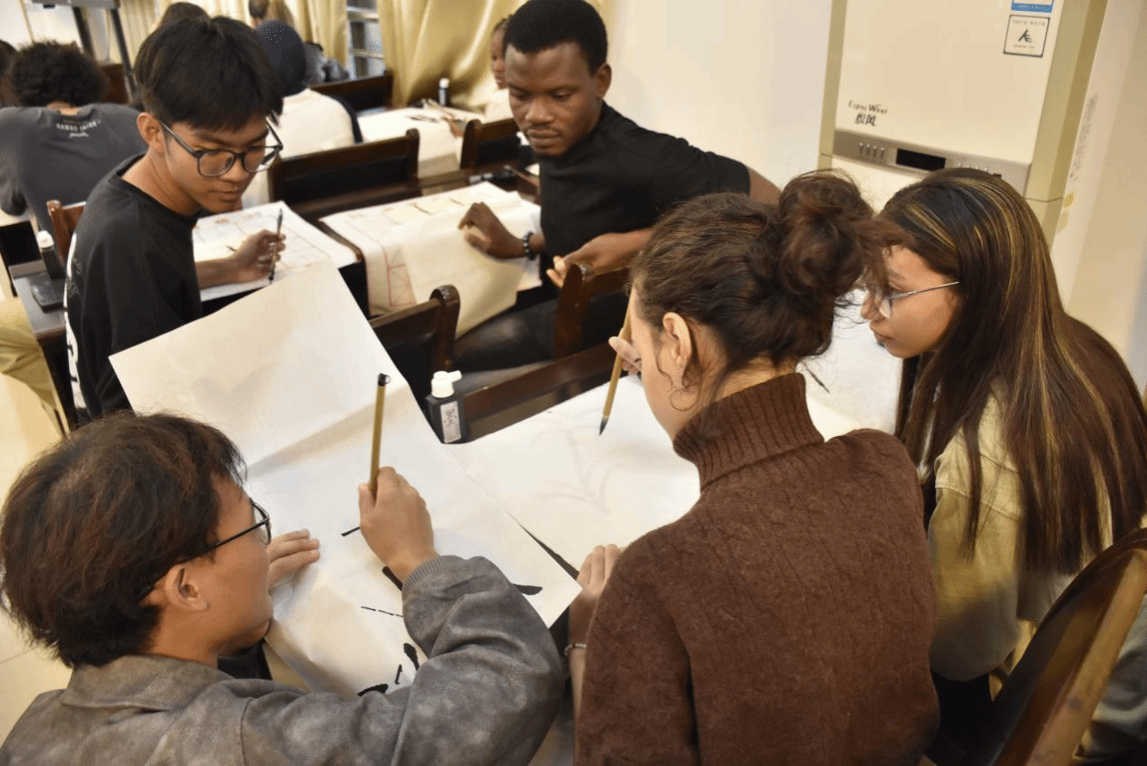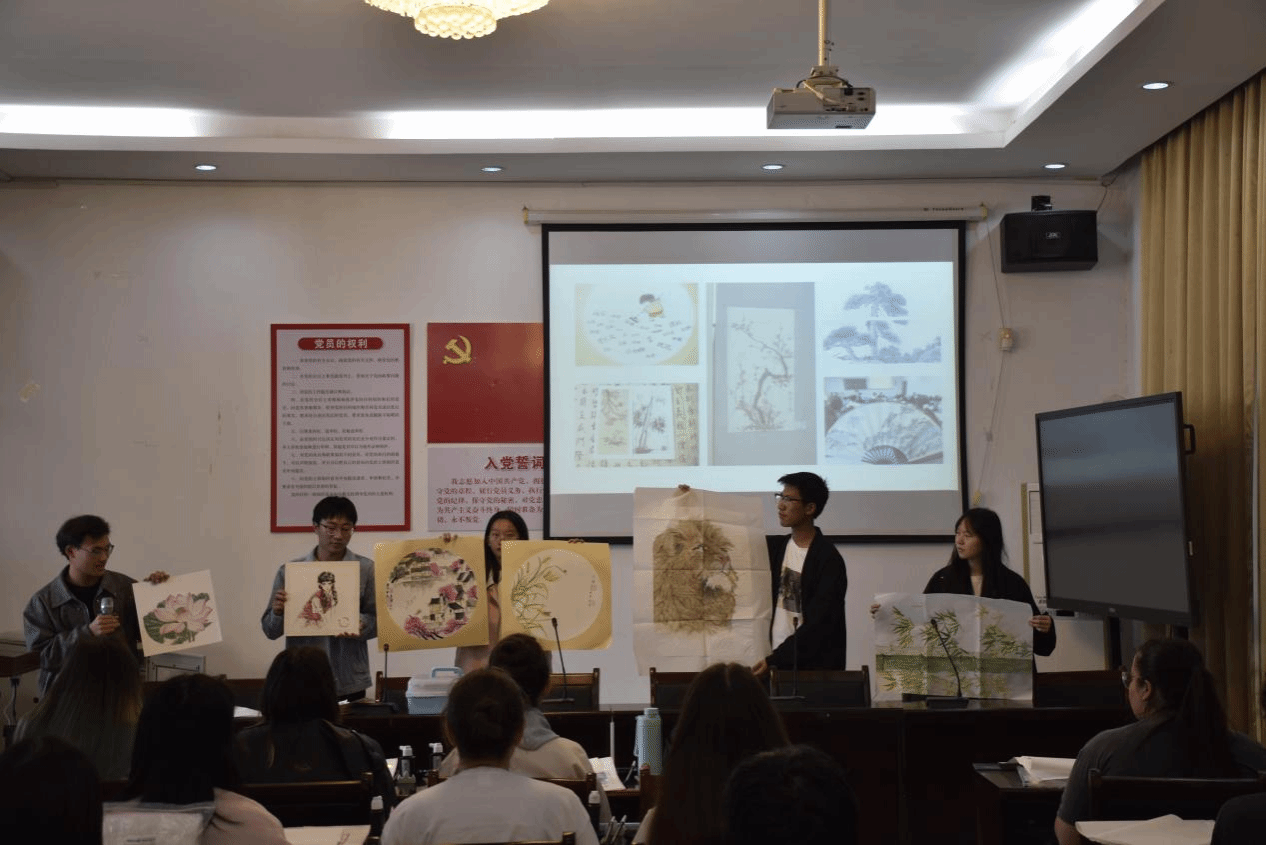 于教15栋102会议室开展中国传统绘画体验课,本次活动由陈蜻蜻老师主持,险峰书画协会徐锐授课,2022级郭昊协助翻译,2022级英西复语专业学生、2024级留学生参加本次活动。