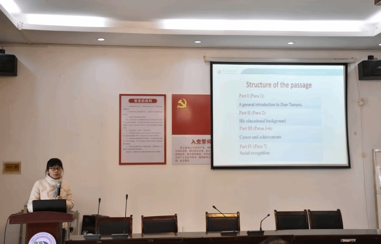 比赛现场,参赛选手们将外语学院特色与学校交通轨道特色相结合,利用不同学科的交叉融合,用鲜活的实例,生动的语言,带来了独具外语人特色的课程思政教学。舒星老师聚焦于美国建立,通过探讨美国独立战争从而突出了内部团结、国家自豪感以及国际合作的重要性:吴让越老师充分展示了中国在铁路领域的进步,通过双层列车的案例,强调了其在促进民族文化交流中的作用;吴双老师的课程涵盖隧道和桥梁知识,锻炼学生批判性思维及语言能力,充分提升了学生的国家认同感和民族自豪感······