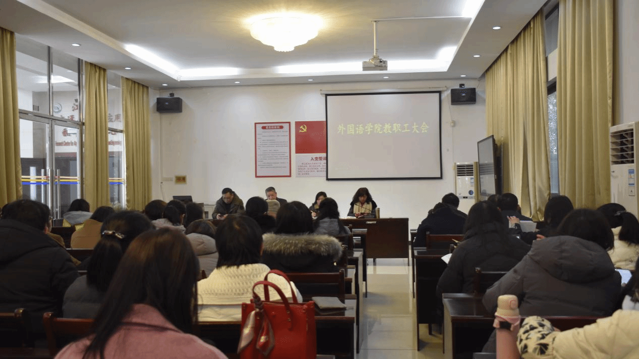 院长陆秀英、党委书记薛先庆、副院长单伟红、李星出席会议,全体教职工参加。