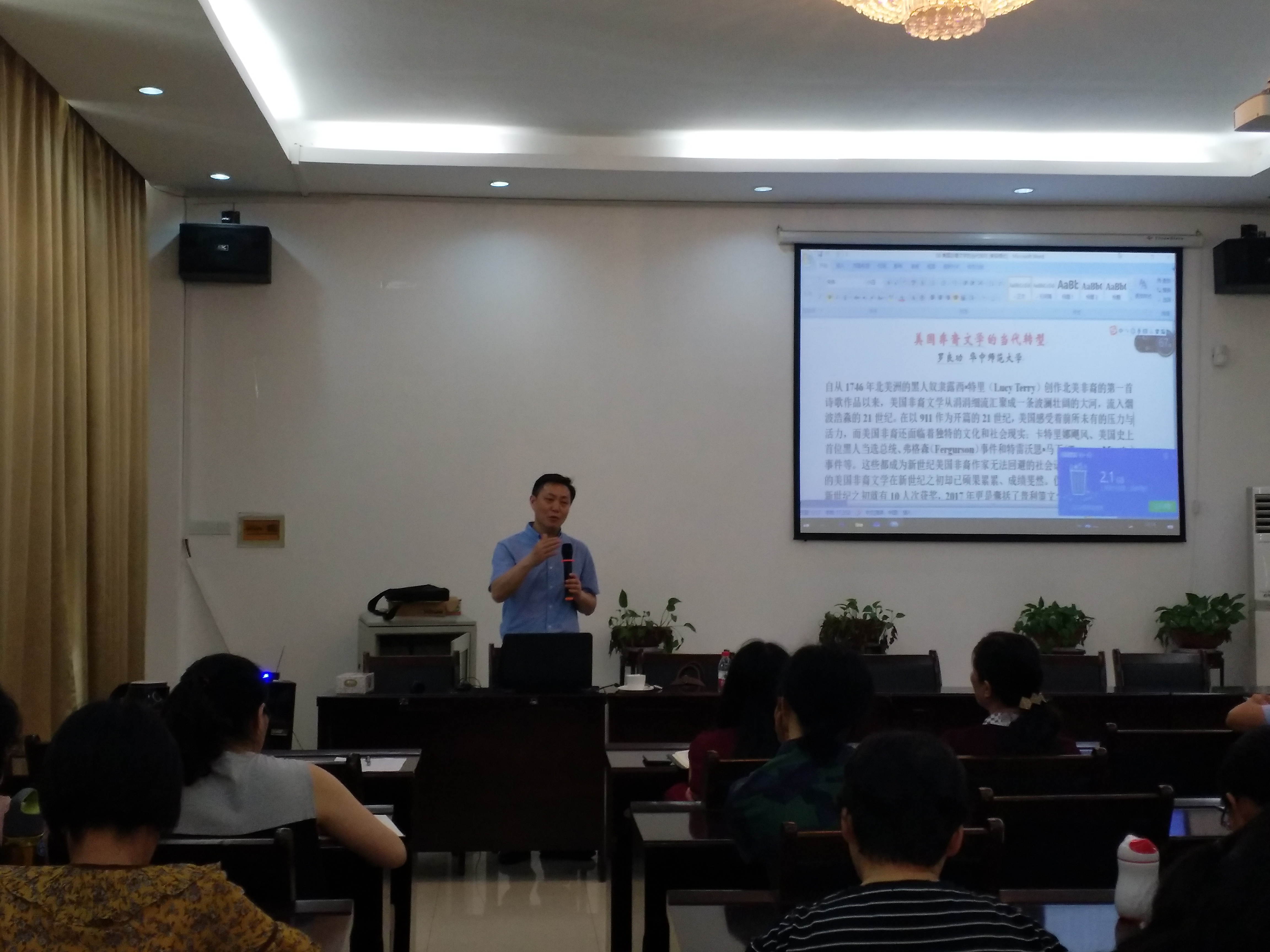 , 做主题为“美国非裔文学的当代转型”的讲座,讲座由副院长袁平华教授主持,91论坛