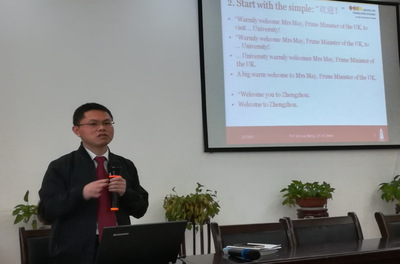 王教授指出在机器化时代,译者应该具备自己的翻译特色。他通过例句和答题的形式让同学们切实体会到翻译细节的重要性,同时着重分析了国内新华社等权威有代表性的“翻译外宣”。