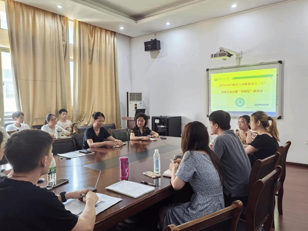 9月5日下午,举行了导师见面会暨“导师说”座谈会,全体硕士生导师和新生参加。会议由李星副院长主持,李星副院长先介绍导师,然后学生逐一自我介绍,师生相互了解,气氛融洽。“导师说”座谈会由何善秀教授和刘庆雪教授主讲。何善秀教授围绕翻译学科的最新研究动态、发展趋势以及前沿热点问题提出了深入浅出的讲解和分析,这不仅拓宽了新生的学术视野,也激发了他们对学术研究的浓厚兴趣。刘庆雪教授建议新生们要有长远规划,多参加笔译实践活动,砥砺深耕,不断提高自身的专业素养。她还建议新生能够在实践中找到兴趣所在。