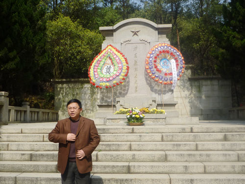 上午9点,一行人步行至方志敏烈士陵园。大家在党旗的引领下,进行了庄严的献花圈仪式,并在烈士墓前默哀三分钟。随后,学生党员代表徐敦鹏代表全体党员发表宣言,他呼吁全体党员要向方志敏烈士学习艰苦奋斗,不怕献身的精神,肩负起自己的使命。在庄严肃穆的气氛中,全体成员进行了党员宣誓仪式。