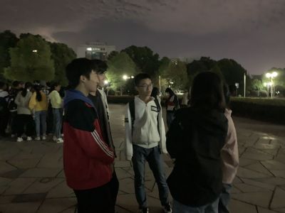 18级翻译2班主办的英语角活动在外院楼前顺利举行。Drew、Dahlin、Ms.Q三位外教应邀参加。