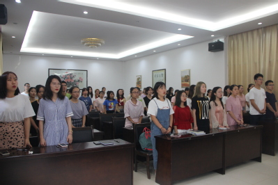 会议在庄严的国歌声中开始,团委书记刘芳馨宣读了此次大会的议程,介绍了《“双代会”代表选举办法》,由51名参会代表举手表决通过总监票人、监票人、计票人名单,最终确定本次大会的总监票人为许心顺,监票员为费楚玲,计票人为张壮壮。
