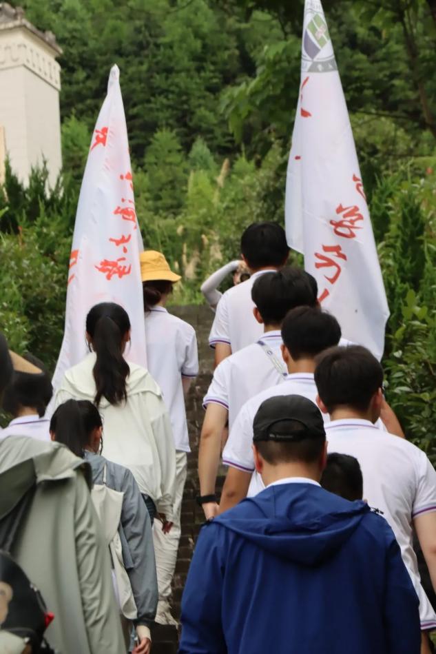学生骨干们徒步前往新篁革命烈士纪念塔,瞻仰革命烈士纪念塔,在烈士纪念塔前集体默哀三分钟,以表追思。电气学院党员代表刘铭涛带领电气-外语学生骨干在烈士塔前齐声诵读方志敏烈士《可爱的中国》节选,缅怀革命先烈,传承红色精神。