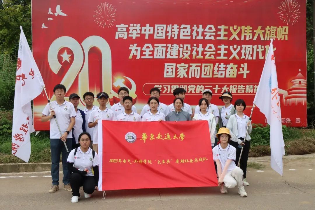华东交通大学电气-外语学院“火车头”暑期实践队共17人,由外语学院学工办副主任、团委副书记熊弯老师与电气学院学工办副主任、团委副书记夏圣伟老师带队,外语学院学生骨干6人与电气学院学生骨干9人组成。实践队通过查阅各实践点相关资料后,选择江西省上饶市横峰县新篁办事处作为本次实践地点并与工作人员进行接洽。以“红色助农旅,宣扬新风尚”为主题,从“理论宣讲、政策宣传、安全教育、志愿服务、专项调研”五个方面开展文化,科技,卫生宣讲以及乡村振兴助农帮扶等系列活动。