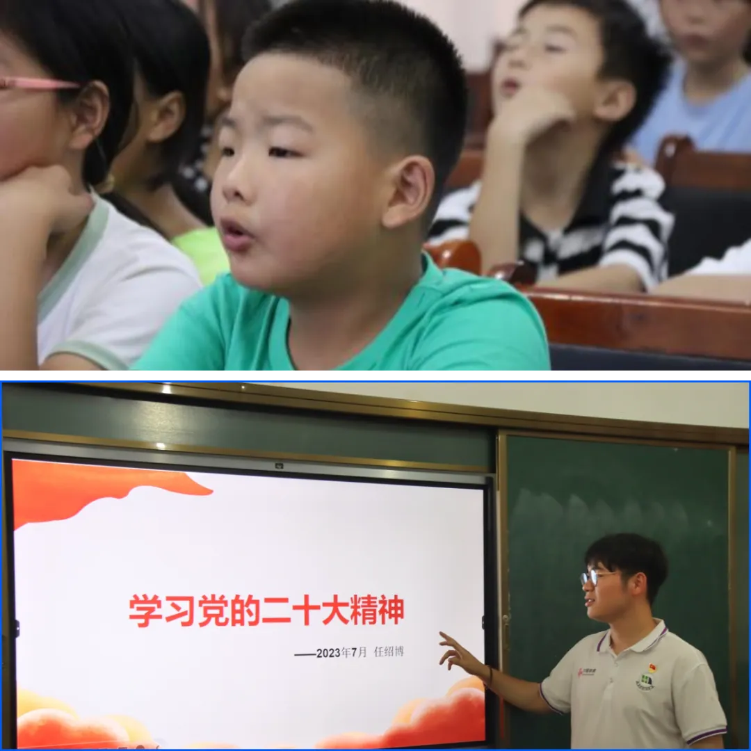 随后任绍博等同学以“征途漫漫,惟有奋斗”为主题向小朋友们介绍了党的伟大成就,培养积极向上的人生观和价值观,扣好人生第一颗扣子。