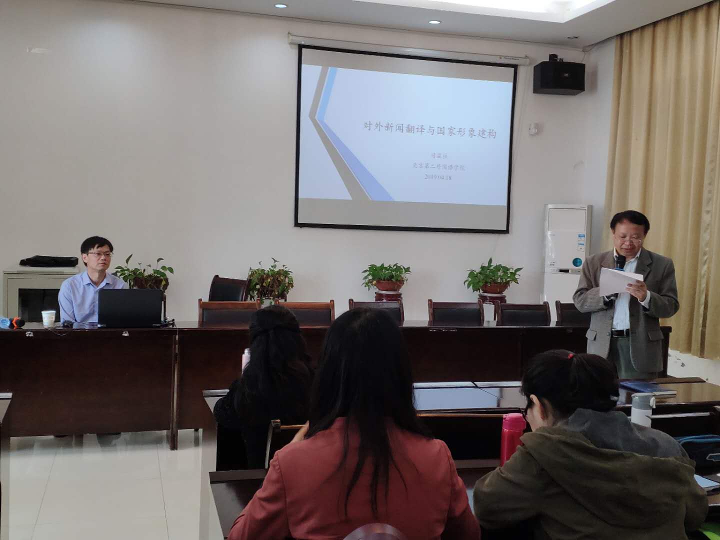 讲学。司教授在外语学院102报告厅作题为“对外新闻翻译与国家形象建构”的学术报告。报告会由副院长袁平华教授主持,外语学院全体老师和翻译硕士研究生参加此次报告会。