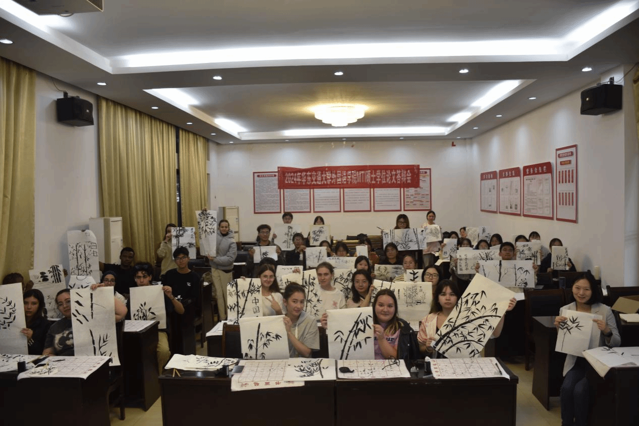 于教15栋102会议室开展中国传统绘画体验课,本次活动由陈蜻蜻老师主持,险峰书画协会徐锐授课,2022级郭昊协助翻译,2022级英西复语专业学生、2024级留学生参加本次活动。