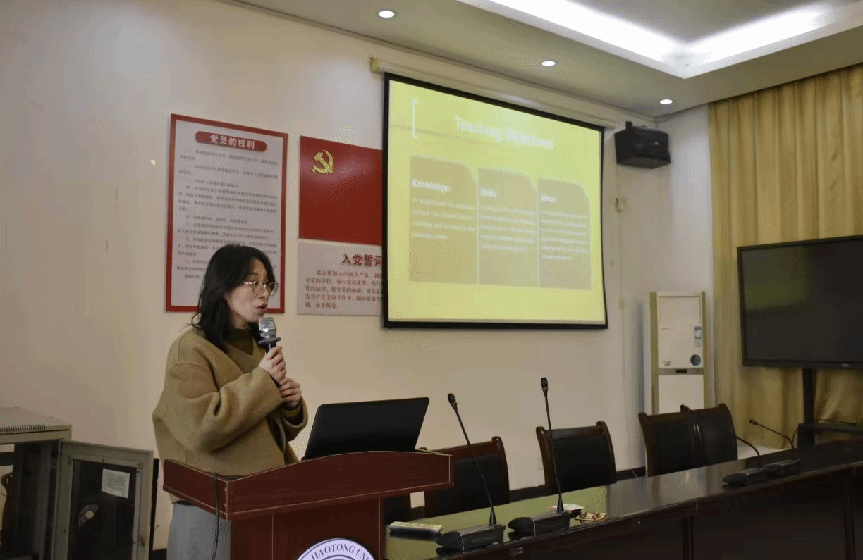 比赛现场,参赛选手们将外语学院特色与学校交通轨道特色相结合,利用不同学科的交叉融合,用鲜活的实例,生动的语言,带来了独具外语人特色的课程思政教学。舒星老师聚焦于美国建立,通过探讨美国独立战争从而突出了内部团结、国家自豪感以及国际合作的重要性:吴让越老师充分展示了中国在铁路领域的进步,通过双层列车的案例,强调了其在促进民族文化交流中的作用;吴双老师的课程涵盖隧道和桥梁知识,锻炼学生批判性思维及语言能力,充分提升了学生的国家认同感和民族自豪感······