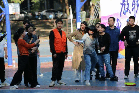 陆秀英和薛先庆到现场给接力赛跑老师们加油